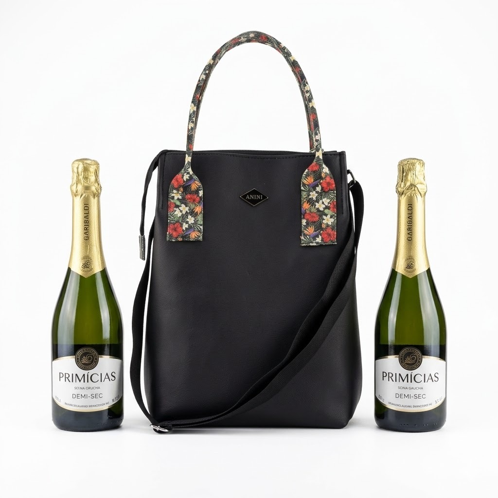 Conta com alça de 30 mm, disponível em algodão ou cetim, oferecendo conforto no transporte e um acabamento elegante. Ideal para celebrações, eventos ou para presentear, é um acessório funcional que valoriza a experiência de servir.